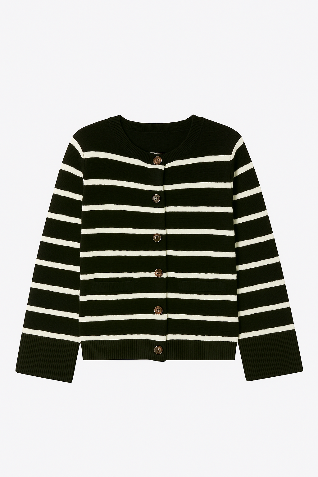 Meg Cardigan | Black and White Stripe Button Cardigan